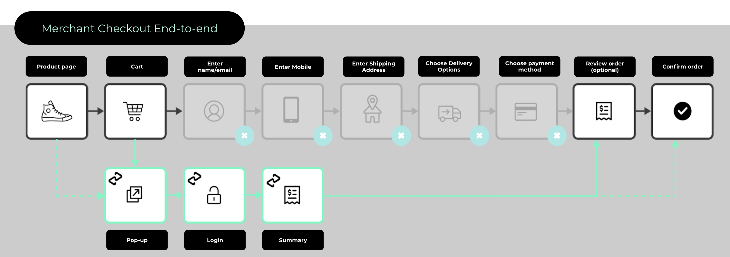 Deferred Shipping: The user returns to the retailer site to finalise delivery options and complete the order.